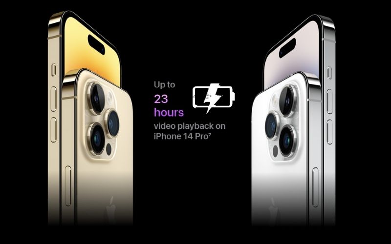 iPhone 14 Pro 512GB cũng tạo một dấu ấn tuyệt vời bởi khả năng phát video liên tục lên đến 23 giờ, có thời lượng pin lớn thứ nhì trong tất cả các sản phẩm của Apple tính đến thời điểm hiện tại.