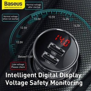 Đánh giá Tẩu sạc oto Baseus Digital Display Dual USB 4.8A Car Charger 24W (Bạc)